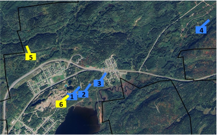 Figure 2 – Current Gold Candle drill deployment at Kerr Addison (drill1-3,5 and 6) and the Geminid project (drill 4). Yellow units representing the newly deployed drills.