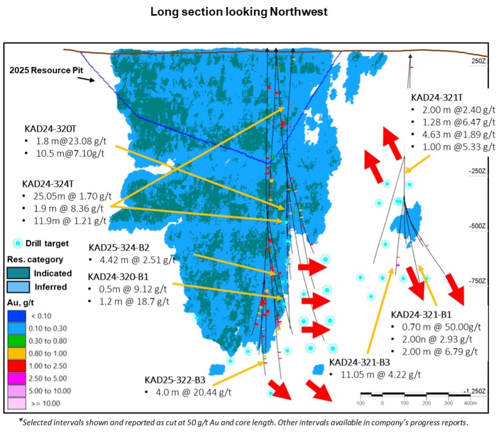 • KAD24-322B1: 882.50-895.10 m; 12.60 m @ 2.17 g/t